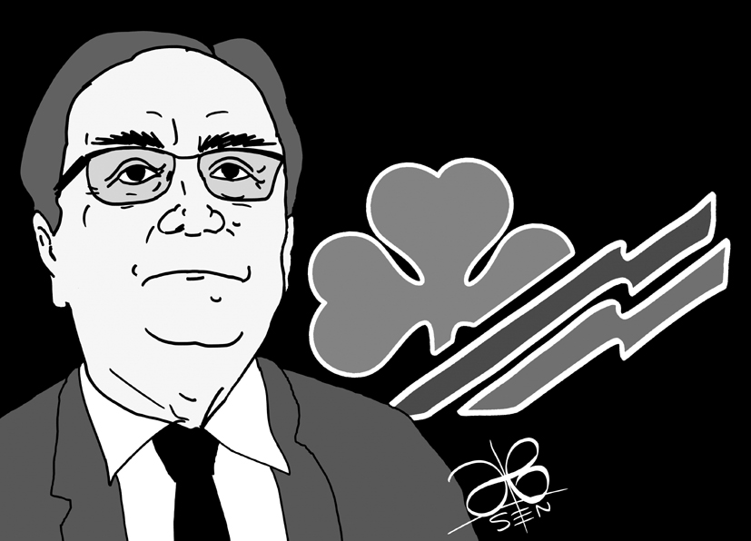 Illustration for Epohi Weekly on Nikos Konstantopoulos surprise Panathinaikos F.C. presidency announcement.